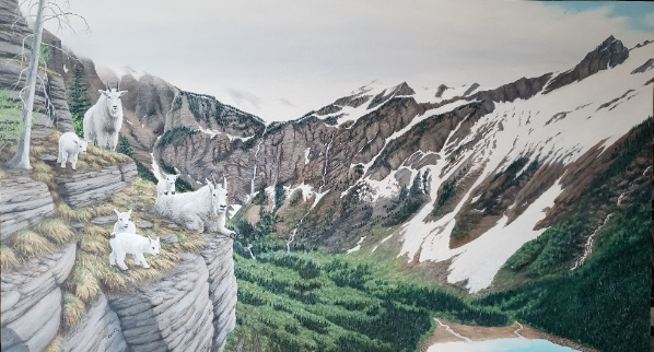A trip to Glacier National Park in Montana in search of this spot for the purpose of painting this scene was the goal. The smoke from the fires clouded the scene so Dan's artistic license was called for to create this painting. This is the original - prints will be in the future.